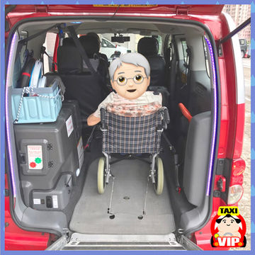 我們可100%保證客人輪椅必定由車尾無障礙斜板進入,並無需過櫈,坊間有部份營運商假扮輪椅的士,輪椅需要由側門進入並設置15分鐘才能出發,敬請留意!